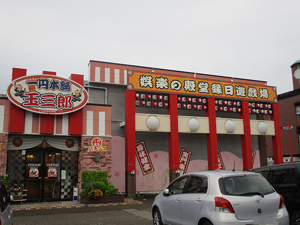 舞台となったのは、紅白の配色の提灯が飾られているといった特徴的な外観の「パチンコ玉三郎竹尾店」。