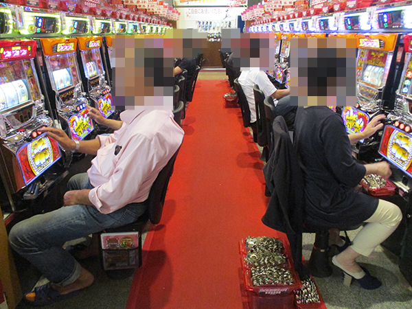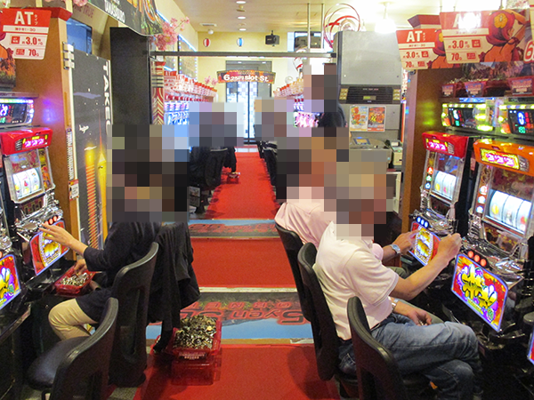 入店時に稼働していたのは6台。老若男女それぞれのプレイヤーが楽しそうに遊技をおこなっていたことを覚えている。