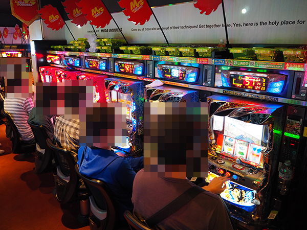 照明が暗めに設定されている場所もある「MEGA GODDESS」。各台のカラフルな光とプレイヤーたちのステキな笑顔で彩られることにより、活気のある雰囲気であったことを覚えている。