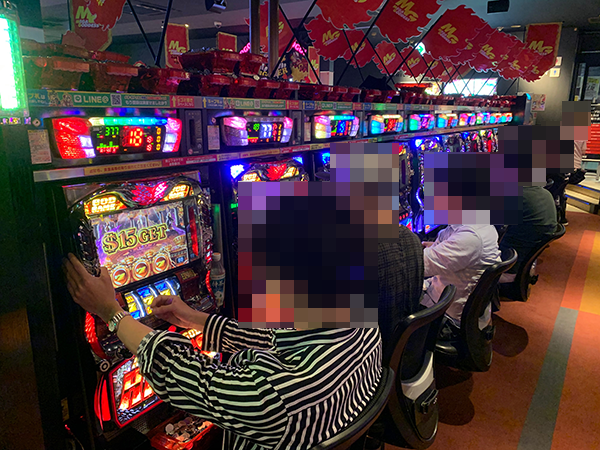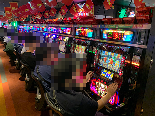 高稼働の機種が多い店内でも盛り上がりはとくに大きい。どのタイミングでみても活気のあるムードが感じられた。