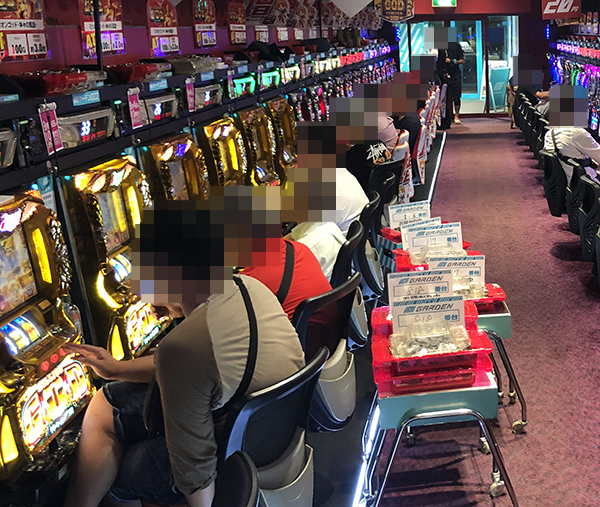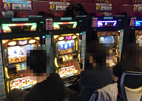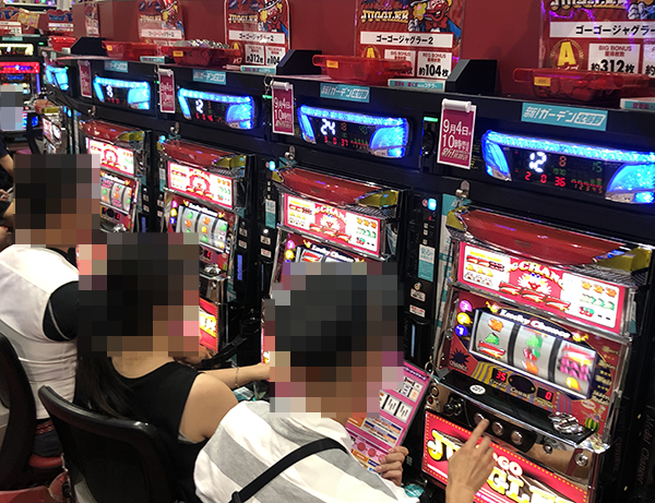 『ゴーゴージャグラー2』や『ゴーゴージャグラー』などに遊技を楽しむプレイヤーが並んでおり、華やかな雰囲気となっていた。