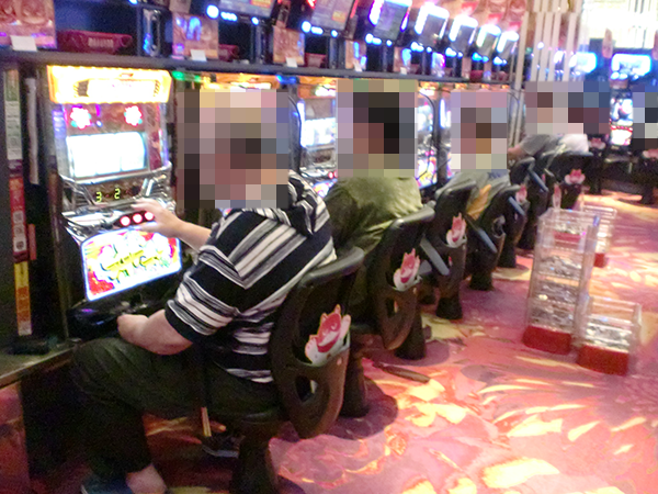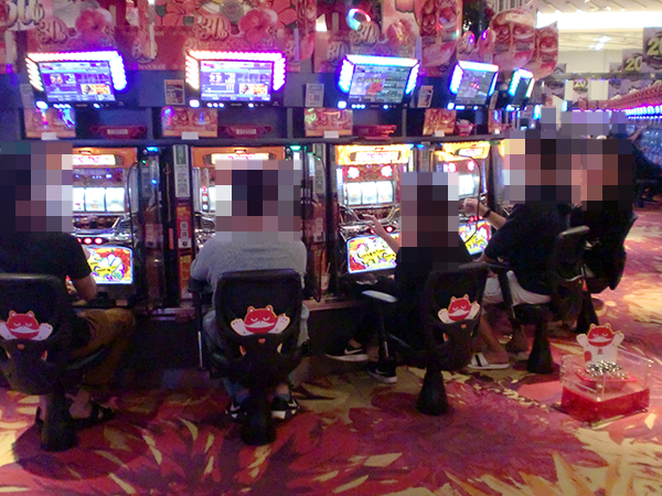 かろやかにレバーを叩いて、花のようにステキな笑みを浮かべている姿が印象深く、遊技を楽しむプレイヤーがズラリと並んでいる光景は壮観だ。