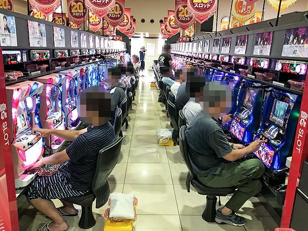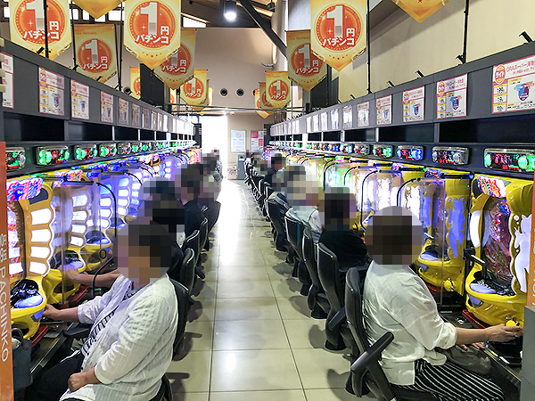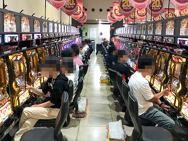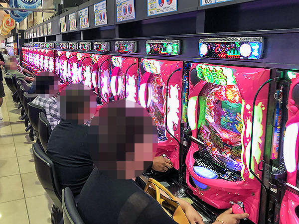 取材時は既に多くのプレイヤーが集結し、パチンコ・パチスロを問わずにぎやかな状況となっていた。