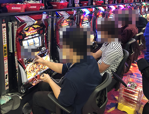 パチスロコーナーをみていくなかで、ひときわ大きな盛り上がりを感じたのは「ツインドラゴンハナハナ‐30」だ。