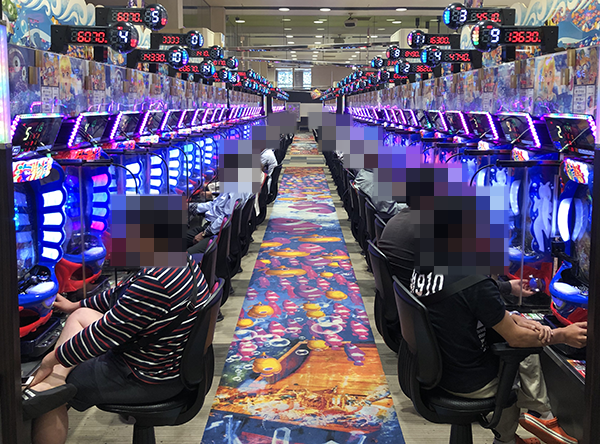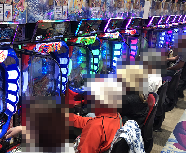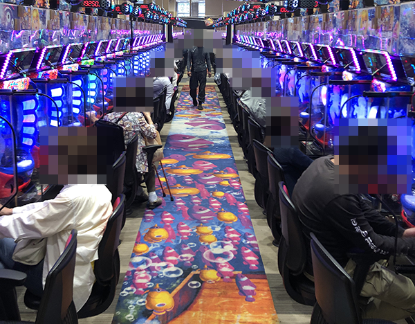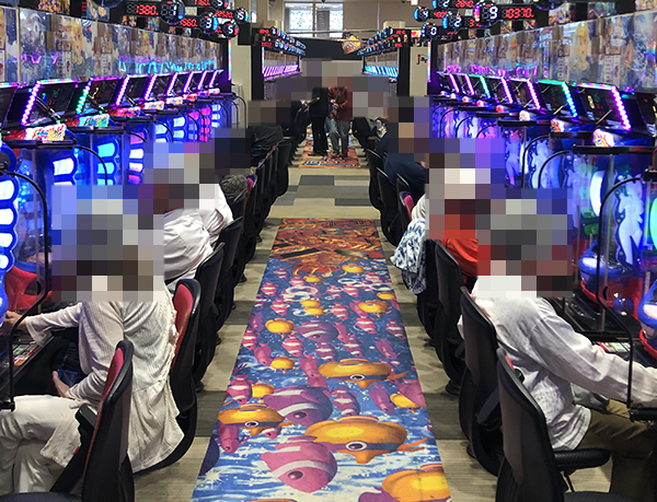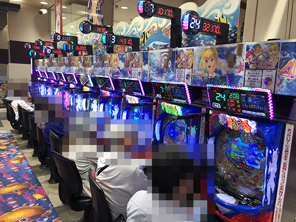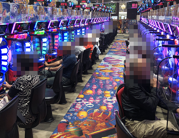 この日は新台入れ替え当日であり、「P北斗の拳8覇王」や導入されたばかりの「Pフィーバー機動戦士ガンダム 逆襲のシャア」などをはじめ、パチンココーナーの各所が活況であった。