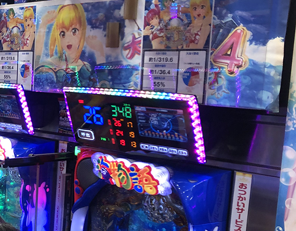 「CR大海物語4」が設置されているシマは複数あり、さまざまな場所に遊技を満喫するようなプレイヤーの姿があった。隣同士で談笑しているシーンもみられ、楽しい時間を共有して、より充実感を得られていたように思う。