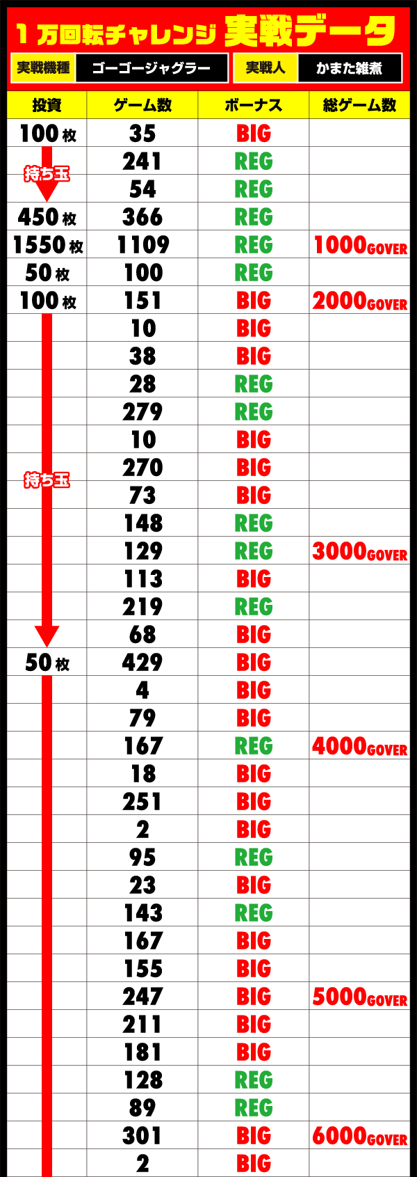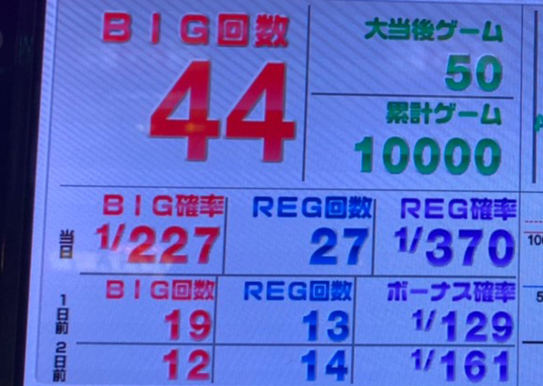 夕方頃までは順調だったものの、夜になってからはボーナスを消化する時間に苦戦ぎみ。思うようにゲーム数を伸ばせず、チャレンジ成功はギリギリな状況となっていた。