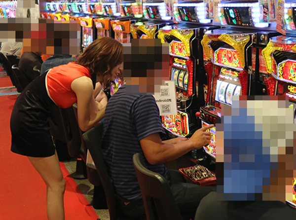 店内をまわりつつ、プレイヤーとの交流も楽しんでいたやすなちゃん。遊技の話などで盛り上がっており、ステキな時間を共有しているように思えた。