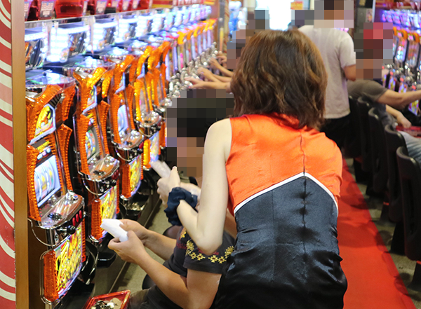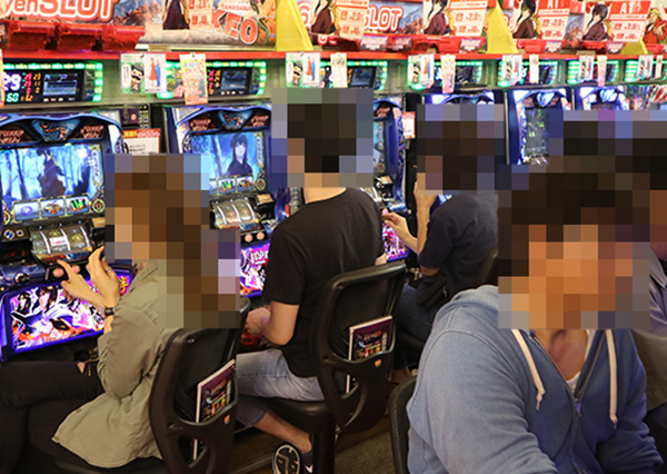 ほかにも、「CR J-RUSH3」や「CRA海物語3」などがにぎやかな状況。プレイヤーたちはうれしそうな表情でハンドルを握っていた。