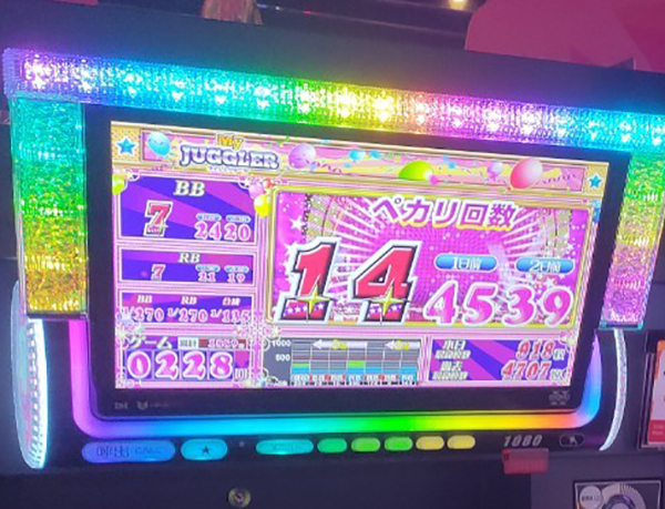 BIG7回・REG7回、BIG12回・REG13回など、BIGとREGをバランスよく獲得しながらボーナス回数を伸ばしている台も目にしている。