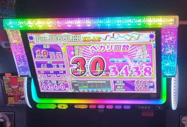 遊技を満喫しているような姿のほかに、3177Gを消化した時点で30回のボーナスを獲得している台も確認。