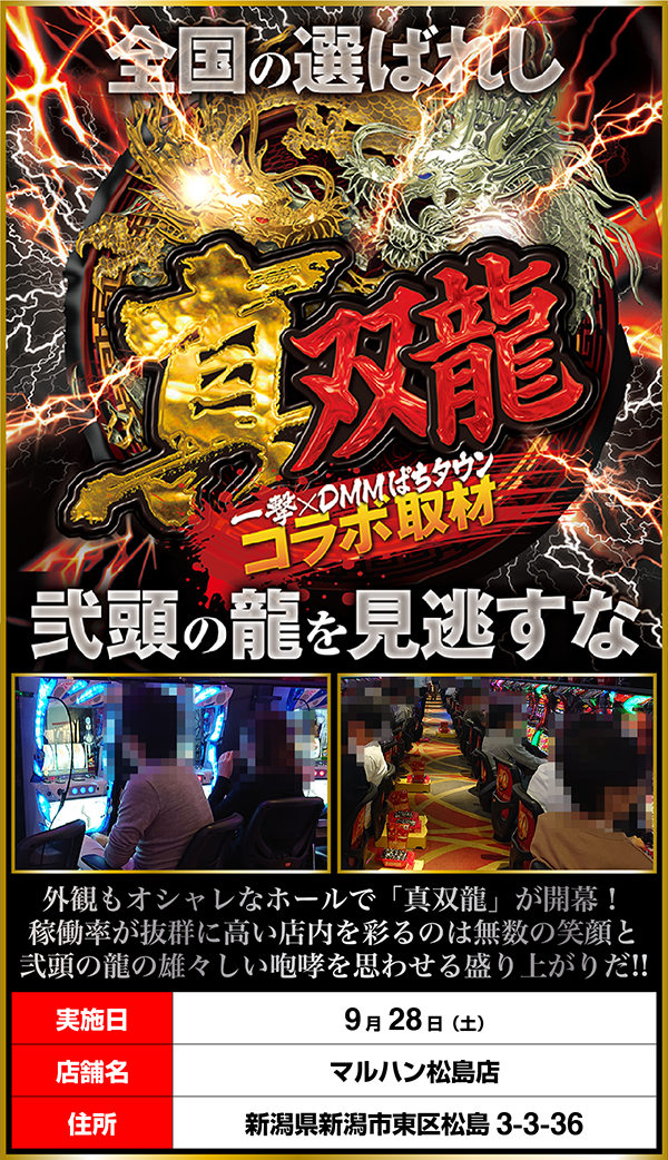 弐頭の龍の存在を追い求め、「マルハン松島店」にて「真双龍」を実施。