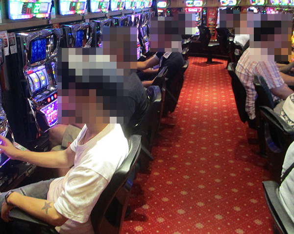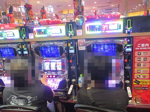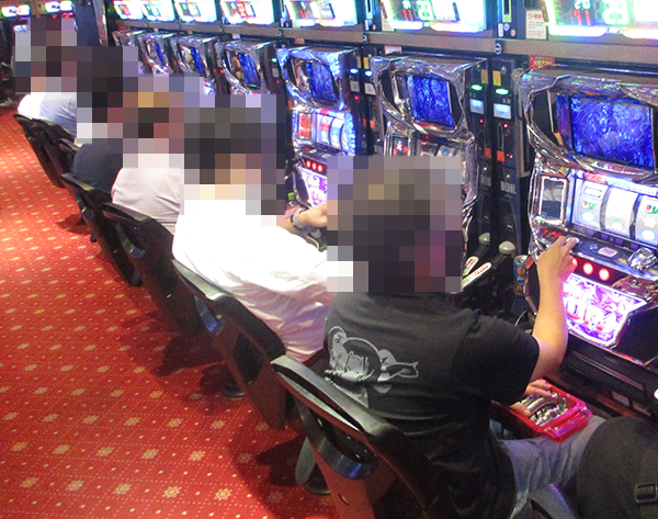遊技をおこなっているプレイヤーたちは、かろやかにレバーを叩いてテンポよくストップボタンを押しており、表情はとても明るい。