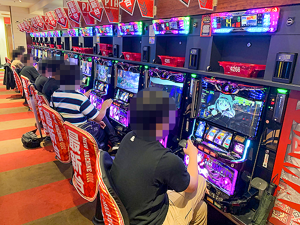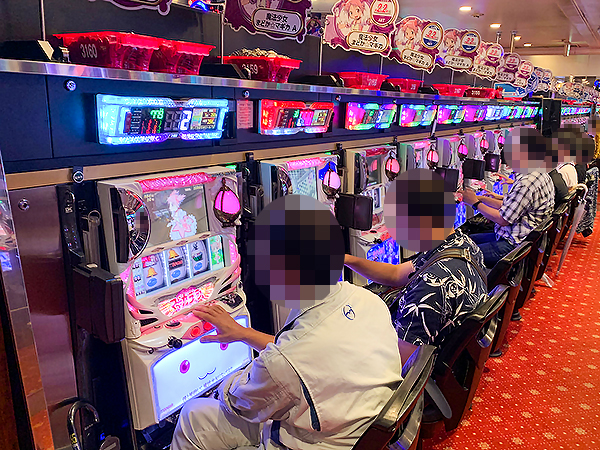 1000円/186枚パチスロは全体的に高稼働。空き台が見当たらないほどの盛況ぶりだった。