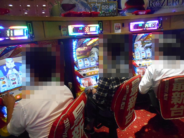 空き台に座ってレバーを叩きはじめたばかりの姿やじっくりと機種のおもしろさを堪能しているといったプレイヤーなど、ひとりひとりの状況に違いはあれど全員が満足感を得られている様子。活気づくシマ内をみているだけでも、うらやましさがこみ上げてくるほどに魅力的な機種であった。