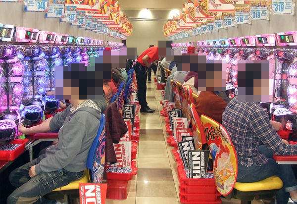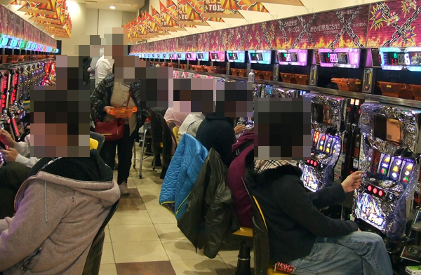 ホール内の様子をみてみると、パチンコ・パチスロともにほとんどの機種が満席となっており、4円パチンコでは海物語シリーズや「CRヱヴァンゲリヲン10」の注目度が高かったように思う。
