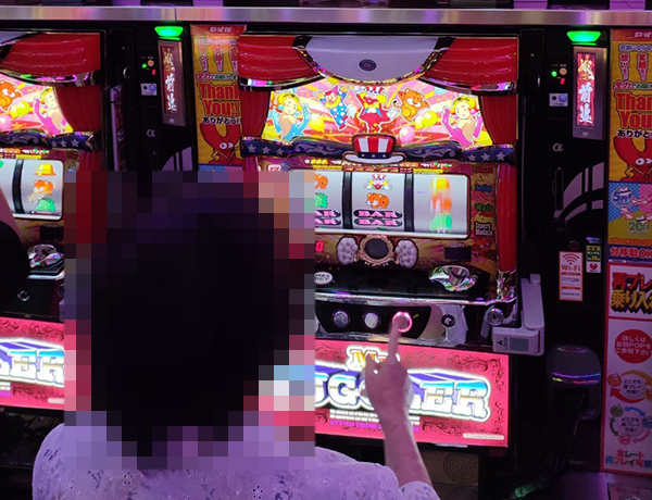 パチスロコーナーをみていき、ひときわ明るい雰囲気に包まれている機種の前で足がとまった。8台設置の「マイジャグラーⅣ」だ。