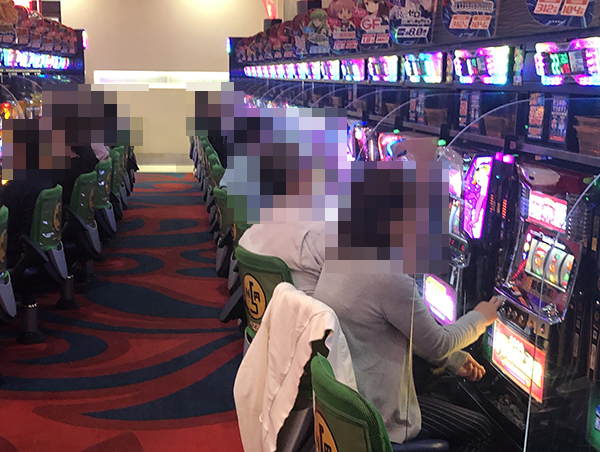 猛者がひしめくパチスロのにぎわいは大きく、たくさんの笑顔が広がっていた。