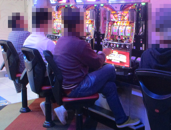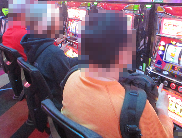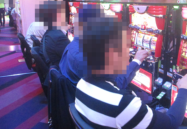にぎやかな光景のなかにある輝く笑顔を求めて、プレイヤーたちが集まるパチスロコーナーへ向かった!!