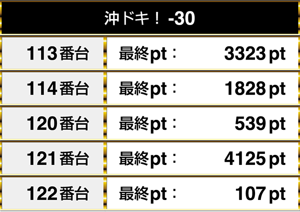 閉店時のプラスptの割合は40%以上であり、なかには3000ptを上回るデータも残っていた。