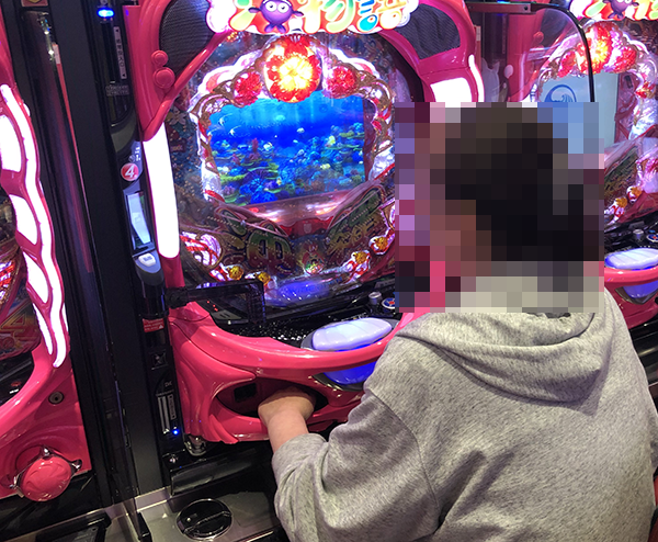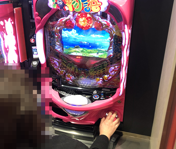 明るい気分になりながら進んでいくなかで、「CRスーパー海物語IN沖縄4」のプレイヤーに目をひかれた。