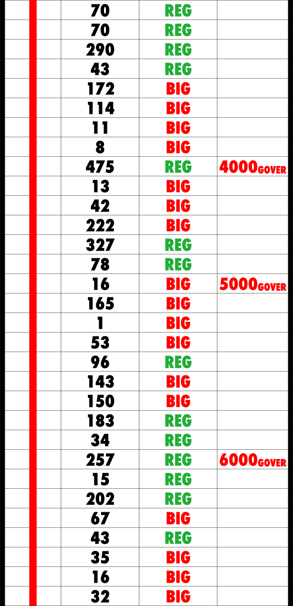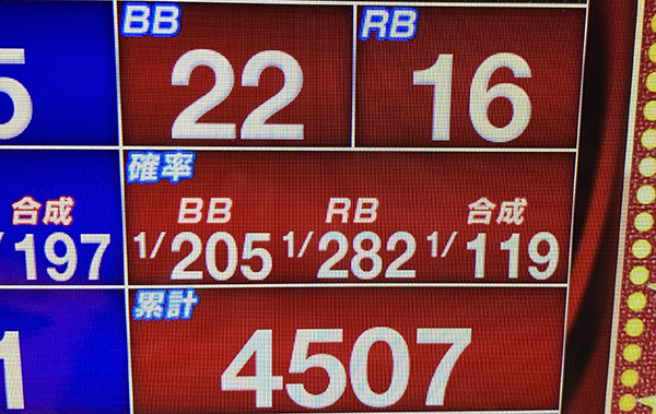 朝イチと変わらずにボーナスを獲得する回数は多いものの、消化ペースを維持できていたこともあり、15時頃には4500Gを通過した。