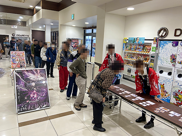 取材当日は新台入替のため、14時に抽選を開催。新台での遊技を心待ちにするプレイヤーが50人以上集まっていた。