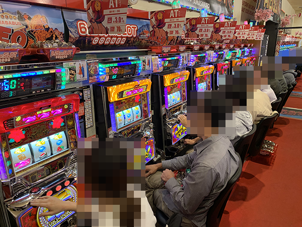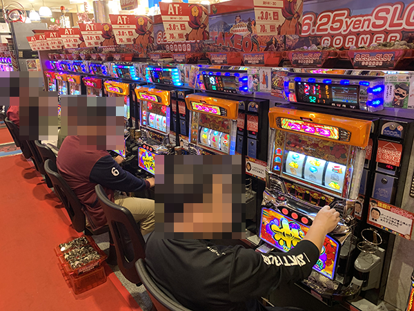 舞台となった「パチンコ玉三郎竹尾店」ではたくさんの楽しそうなプレイヤーがみられた。