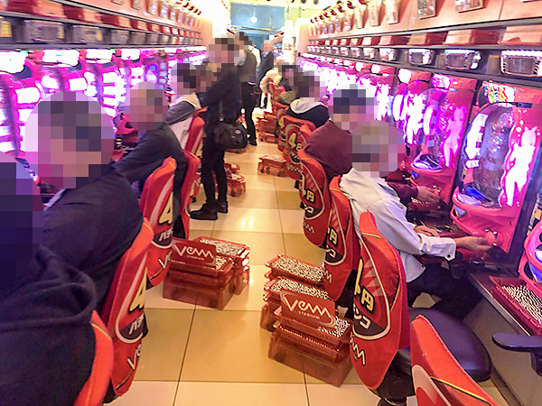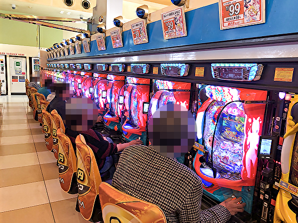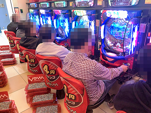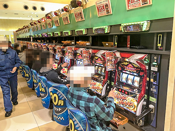 5円パチスロに目を向けると、ほぼ満席となるほどの支持を得ていた。