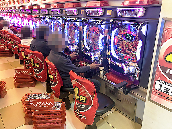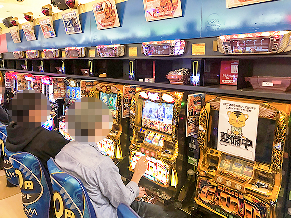 20円パチスロを見ると「ツインドラゴンハナハナ‐30」や「ミリオンゴッド-神々の凱旋-」、「パチスロディスクアップ」で華やかな光景が広がり、プレイヤーたちの笑顔を見て、納得の遊技をできていることがうかがえた。