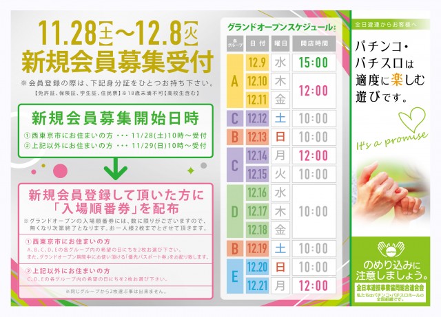 12月9日(水)のグランドオープンを間近に控え、新規会員募集を開始した11月28日(土)。同店に突撃取材を敢行! 気になる設置機種やグランドオープン期間の営業時間など、ひと足お先にマル得情報をゲットしちゃいますよ〜!