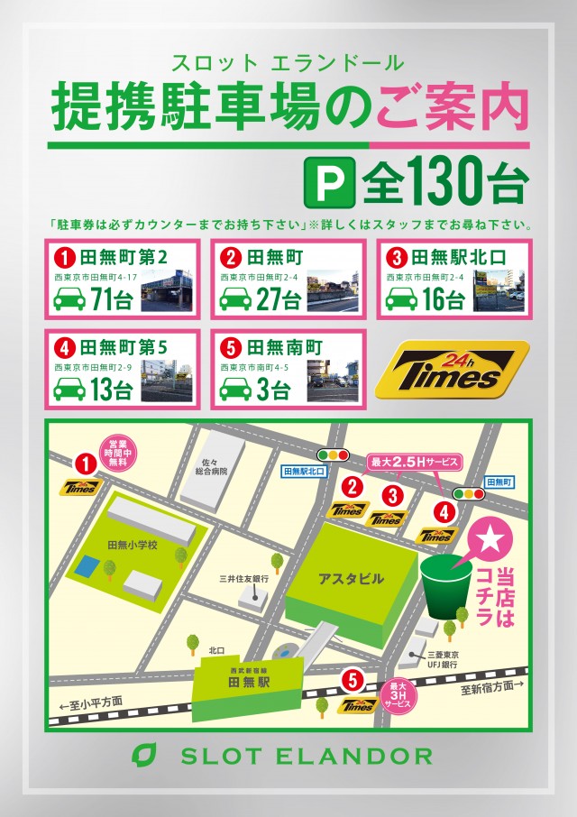 「でも、打つなら終日打ちたいしなぁ」という方に朗報! 少し離れた場所にあるTimes田無町第2なら、料金設定の違いから終日フルで駐められちゃうんです! ちょっと歩くだけなのに、これはかなりお得!!