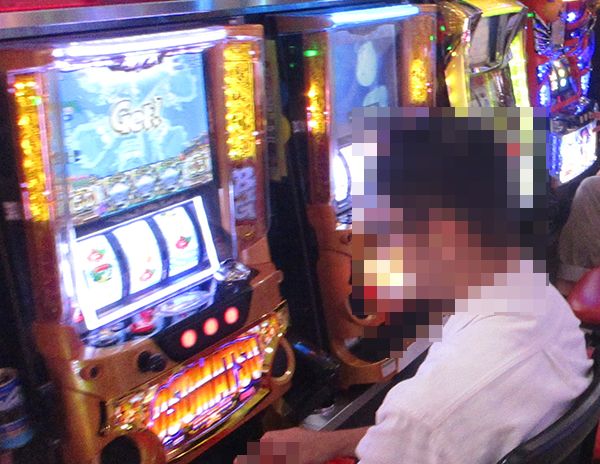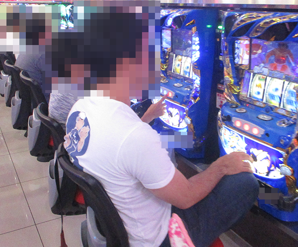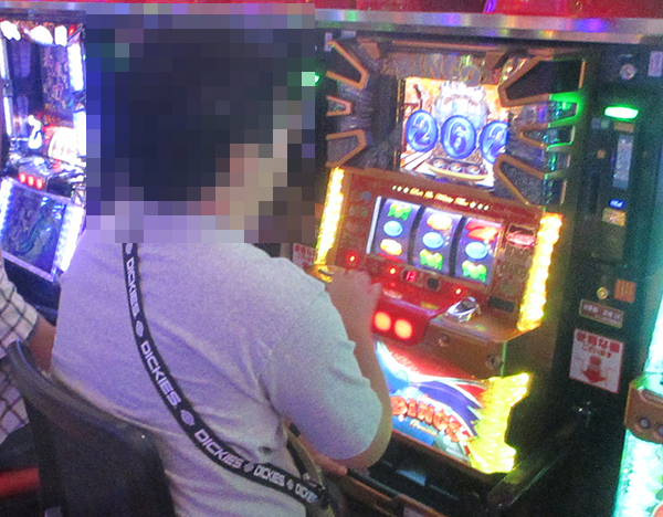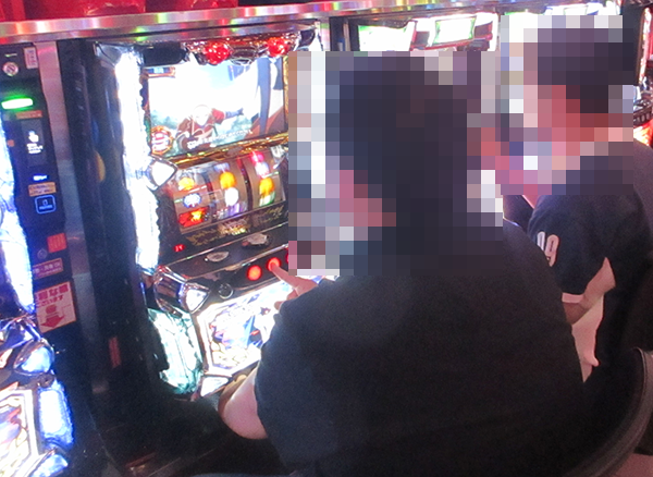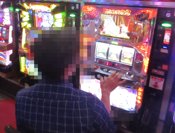 隣同士で設置されている「プレミアムビンゴ」と「戦国コレクション2」で、パフォーマンスを披露しているプレイヤーを発見! うれしそうに遊技をおこなっている姿は、巨木の主軸となる幹のような存在感を放っていた。