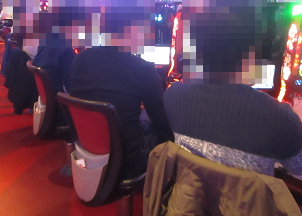 夕方頃に各シマをうかがうと、さまざまな機種に活気のある光景が広がっていた。
