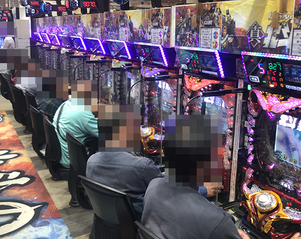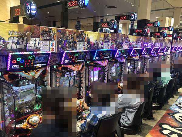 パチンココーナーにおいて、とくに人気を集めていたのは設置台数が多い定番機種。そのなかでも、20台設置の「ぱちんこCR真・北斗無双」にひときわ華やかな光景が広がっていた。