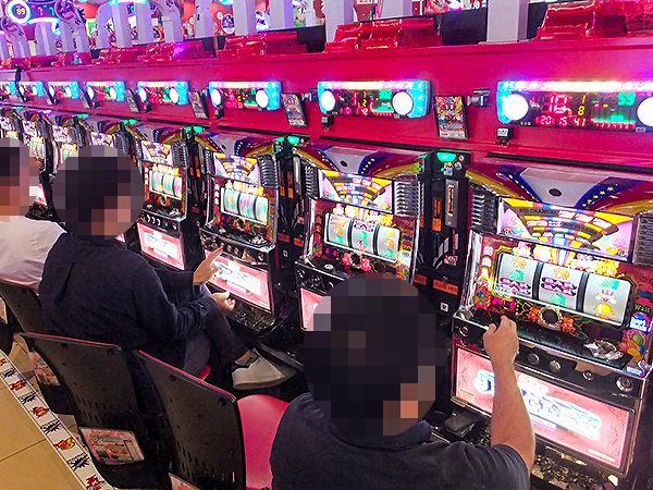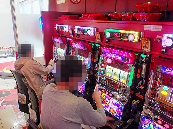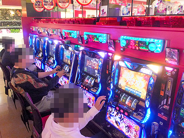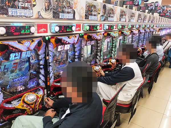 取材時は既に多くのプレイヤーが集結し、パチンコ・パチスロを問わずにぎやかな状況となっていた。
