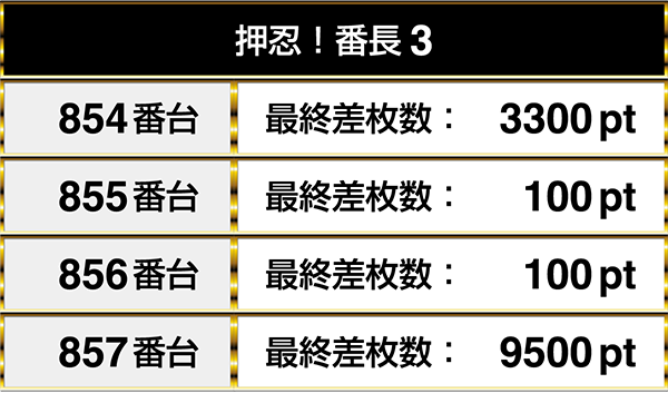 『押忍!番長3』は4台並びでプラスptを記録し、9000ptを上回る台もあった。