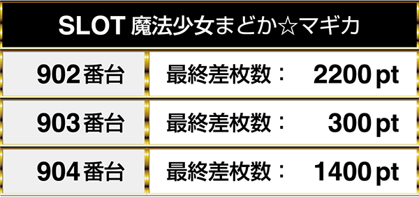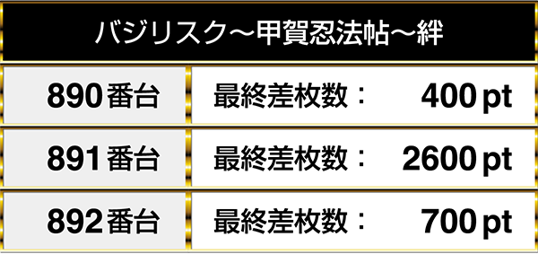 『バジリスク~甲賀忍法帖~絆』と『SLOT魔法少女まどか☆マギカ』はどちらも3台が連なってプラスpt!!