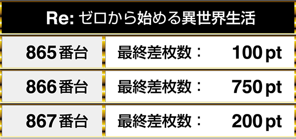 『パチスロディスクアップ』と『 Re:ゼロから始める異世界生活』においては、3台が連なってプラスptを記録した。