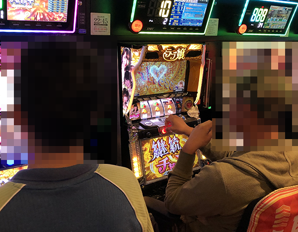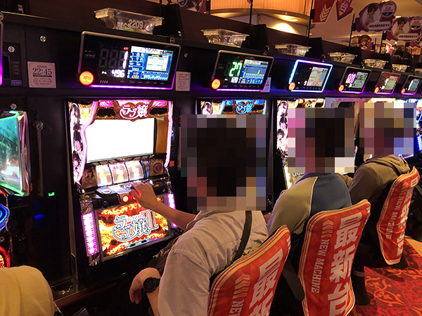 確認時は設置されているすべての台が稼働しており、プレイヤーたちは笑顔でレバーを叩いていた。