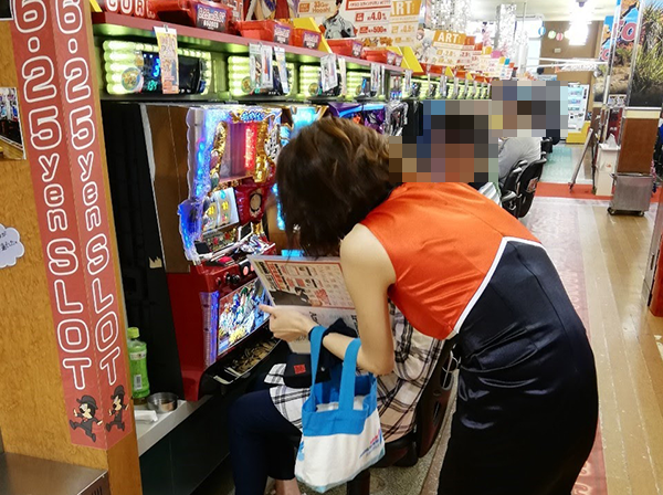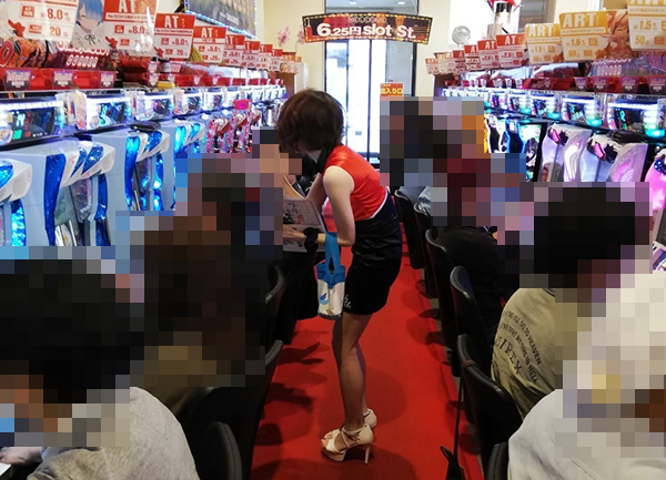 パチンコにおいても、プレイヤーがパフォーマンスを披露していた。
