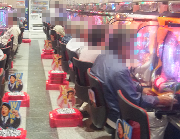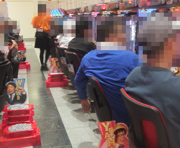 遊パチがズラリと並んでいるシマにも楽しそうにハンドルを握っている姿がみられるなど、随所に活気のある光景が広がっていた。