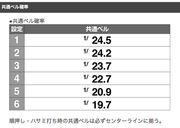 確率に設定差がある小役は共通ベル。サンプルを集めて設定推測に活かしたい。