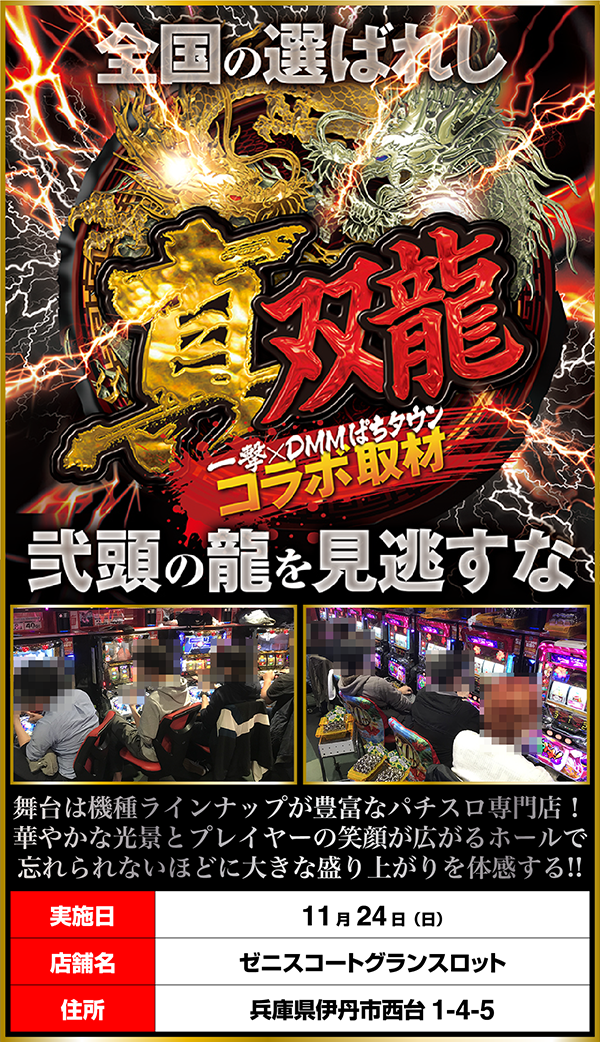 遊技面をはじめ、あらゆる面が優れている「ゼニスコートグランスロット」。パチスロを存分に楽しめる環境が整っていると感じた「真双龍」となった。