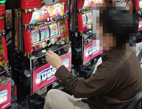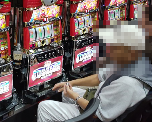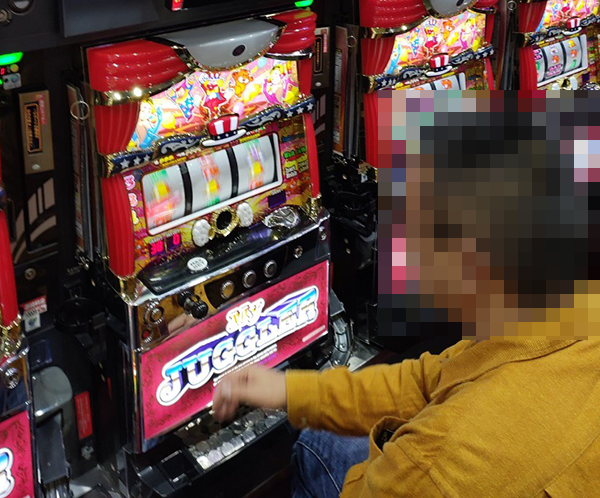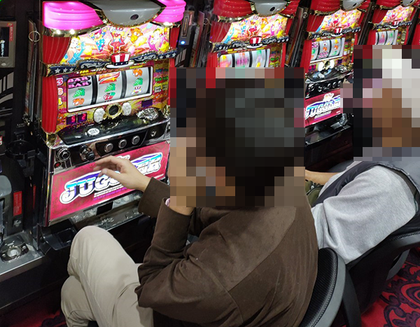 さまざまな場所から明るいムードを感じていると、「マイジャグラーⅣ」で楽しそうに遊技をおこなっているプレイヤーに目をひかれた。