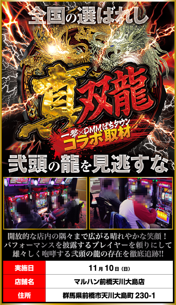 舞台となったのは、白いフローリングのパチンココーナーと赤いカーペットのパチスロフロアで構成されている「マルハン前橋天川大島店」だ。