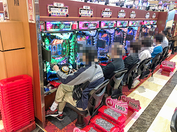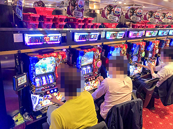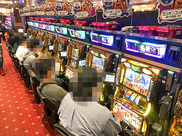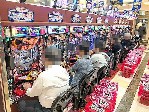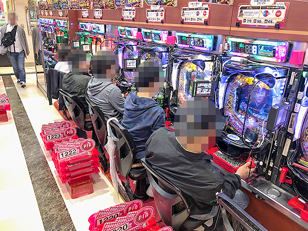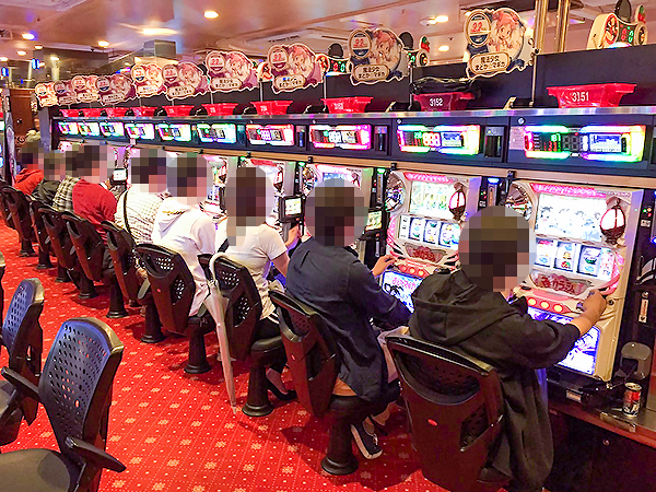 1000円/186枚パチスロの支持も厚く、様々な機種で楽しそうにレバーを叩くプレイヤーが見られた。