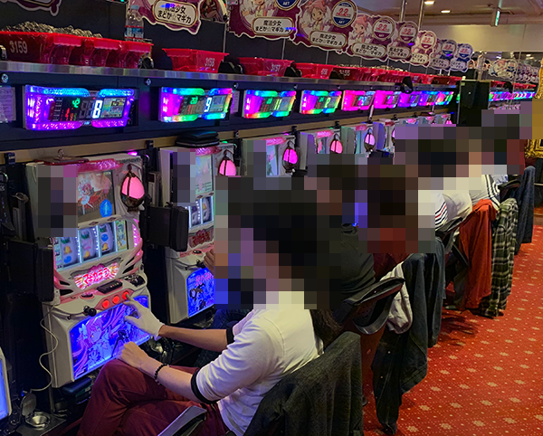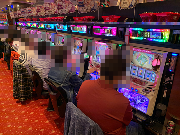 電車でのアクセスがしやすいホールでは多くのプレイヤーがニコニコしながら遊技をおこなっていた。