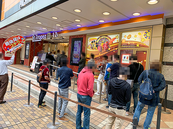 開店前からたくさんのプレイヤーが集合。各人とも遊技開始を待ちきれない様子だった。