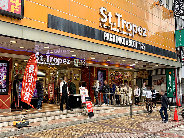 開店前からたくさんのプレイヤーが足を運んでおり、遊技開始を前にして、高揚した表情を見せていた。